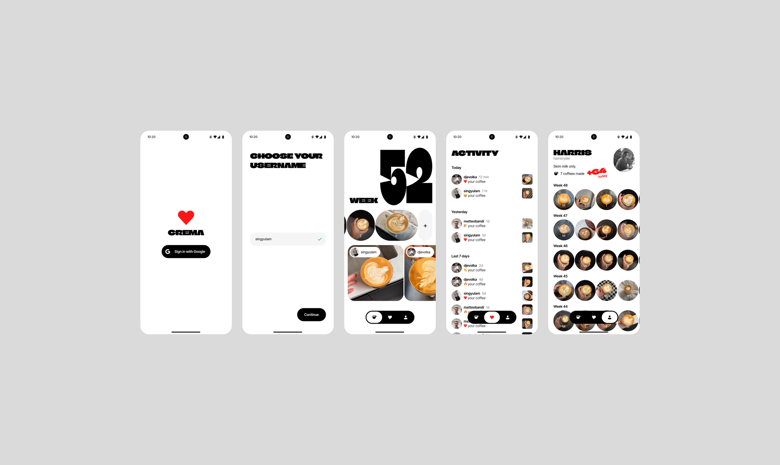 Crema is a Retro-inspired social coffee journaling app.